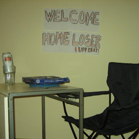 Smiling, I set up a table and beach chair in the lounge, with a can of his favourite lager and pizza. On the wall, I put up a poster and scrawled Welcome home loser across it.